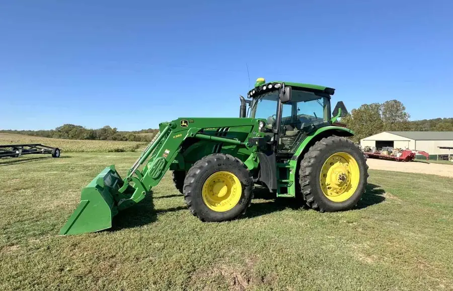 - 2014 John Deere 6150R Cab Tractor w/H360 loader/bucket; 4×4; 3 rear remotes; 540 & 1,000 PTO; No Def; Air Ride Seats; 1,179 hrs.; Starfire 3000 GPS; Direct Drive; Power Reverser; TLS front end