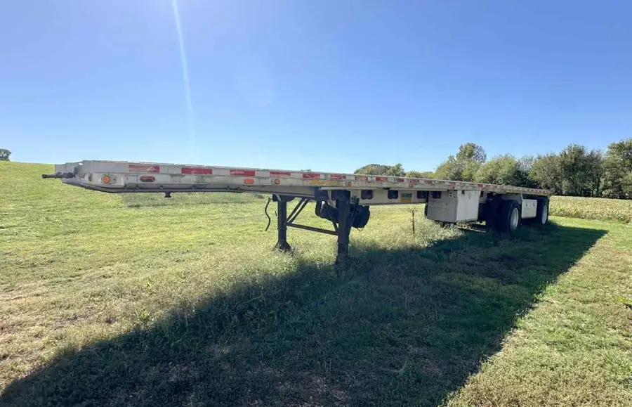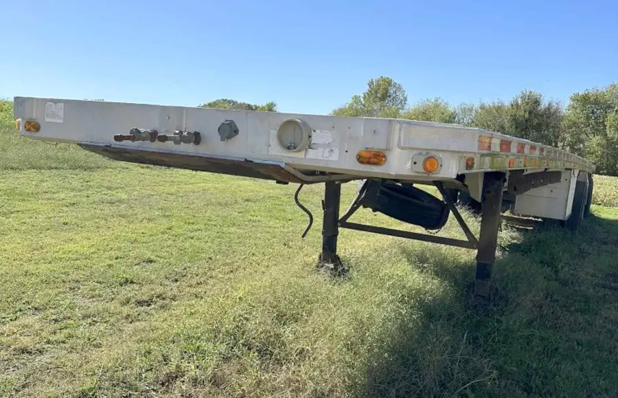 - 1985 Ravens Aluminum Flatbed Semi Trailer 45’ + 4’ Extender x 92” wide; New 5th wheel plate; New Tires; VIN #1R1F04525FE850549