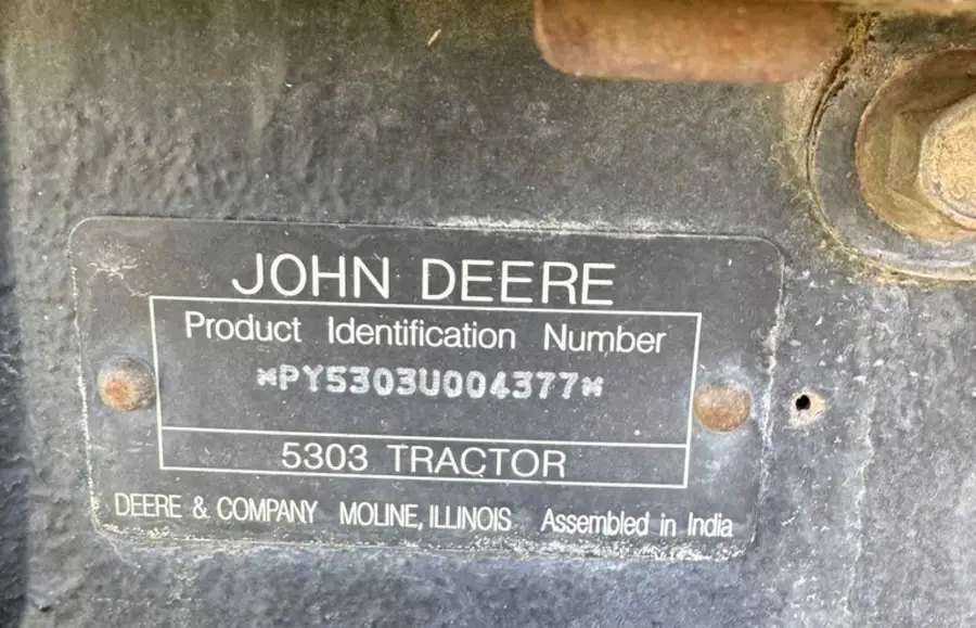 - John Deere 5303 Tractor; 2wd; 1 owner; shows 1,774 hrs.; rear remotes; fluid filled tires; front weights; well maintained!