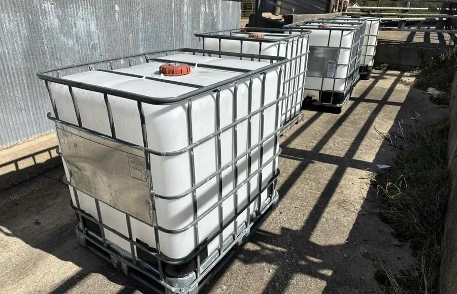 - Several caged water tanks