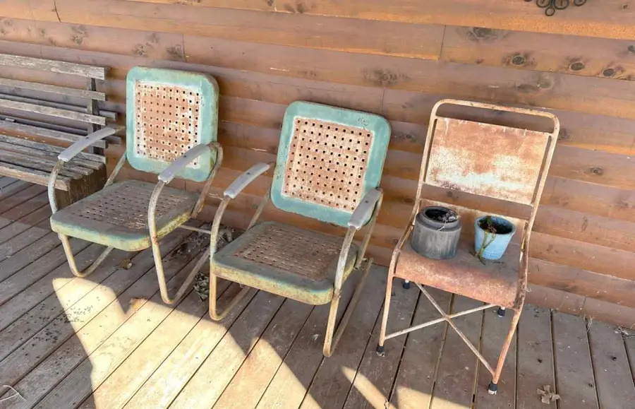 - Porch Swing, metal chairs & Bench