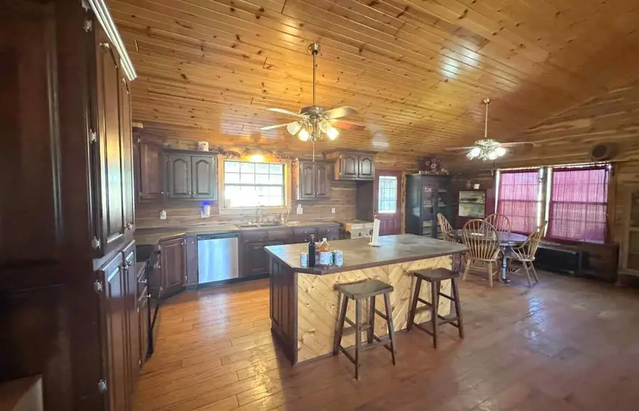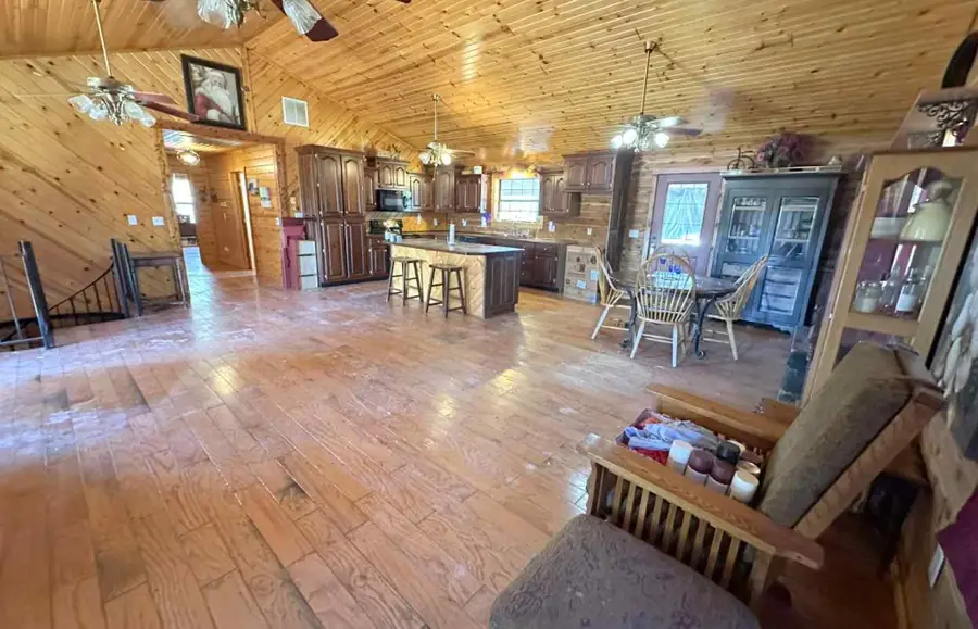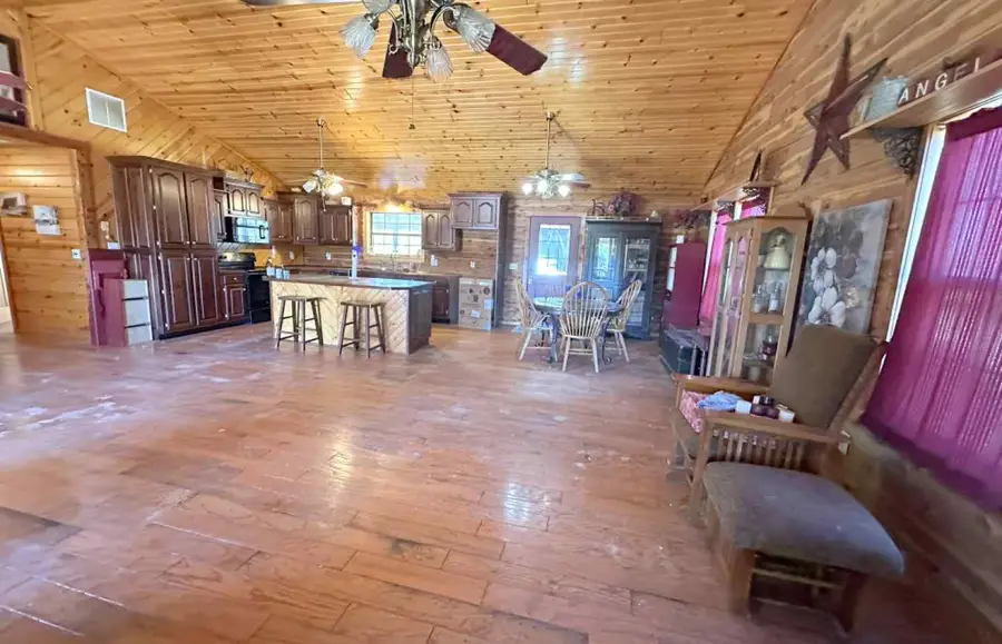 This basement log home, situated on 2+/- acres in Fordland, MO, with easy access to Hwy 60, offers ample space of 2,492 +/- sq. ft. with a large open kitchen/dining/living combo and 3 beds (1 non-conforming)/3 baths. Enjoy your time at home outside with tons of room on the full-length covered porches (Front – 8’x56’ & Back 10’x56’) and lots of open yard space. The all-car wood siding home provides a rustic cabin feel inside and the spiral staircase leading to the basement gives lots of extra space for family. Home has a 2-car garage, Well and Septic, Electric HW heater, Gas furnace & Outdoor wood stove. Fordland Schools. No appliances will convey with the property.